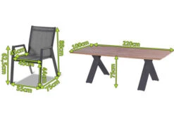 HARTMAN Xanadu / Aruba Esstischgarnitur, Xerix/anthrazit, Alu/Teakholz, 6 Stapelsessel, 220x100cm