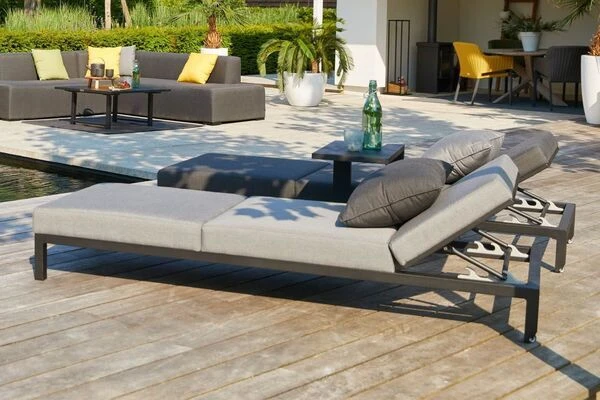 HARTMAN Adam Gartenliege, Flanelle, Alu/Sunbrella, 195x70x30cm, Rückenlehne Verstellbar, Inkl. Kopfkissen