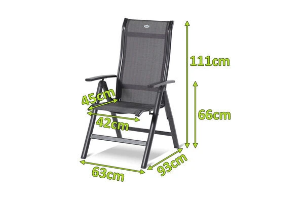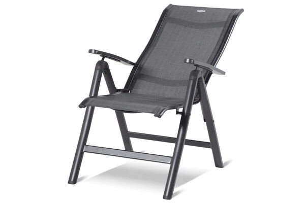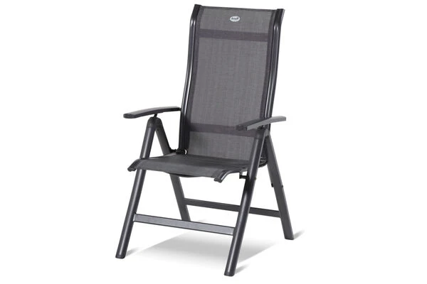 Der Multipositionssessel aus der Alice-Serie weiß durch seine qualitativ hochwertige Verarbeitung und seine Stabilität zu überzeugen. Ob Sie sich zurücklehnen wollen oder gemütlich am Esstisch sitzen möchten, durch die mehrfache Verstellbarkeit finden Sie die optimale Sitzposition. Das Gestell aus robustem Aluminium sorgt für ein geringes Eigengewicht von ca. 5,2 kg, trotzdem kann der der Stuhl mit bis zu 130 kg belastet werden. Um Ihren Terrassenboden beim Verschieben zu schützen, verfügt der Stuhl über praktische Bodenschoner. Dank der vorteilhaften Stoffzusammensetzung der anthrazitfarbenen Textilenbespannung aus 70% Polyvinylchlorid und 30% Polyester profitieren Sie von einer langen Haltbarkeit. Sie werden gar nicht mehr aufstehen wollen, denn das witterungsbeständige Material ist durch seine Flexibilität auch ohne Auflagen sehr bequem.
