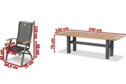 1x Esstisch „Sophie Yasmani“ Sondermodell, xerix/natur, ca. 240 x 100 x 77 cm (53573210) 6x Multipositionssessel „Da Vinci“, xerix/anthrazit, ca. 73 x 64,5 x 110 cm (62900210)