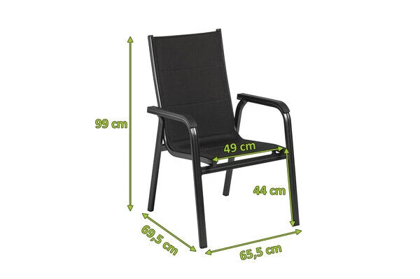 KETTLER BasicPlus PaddedStapelsessel, Anthrazit, Alu/Textilene, 0301202-9400, Stapelbar