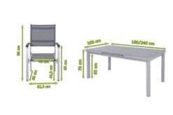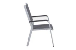 In den Sesseln lässt es sich herrlich Entschleunigen und sie bestechen durch ihren modernen Look. Dank der bequemen Sitz- und Rückenfläche erhalten Sie einen angenehmen Sitzkomfort, der Sie und Ihre Lieben begeistern wird. Das solide und formschöne Gestell wird aus edlem Aluminium in silber gefertigt. Die anthrazit-graue Sitzfläche besteht aus wasserdurchlässigem, hochwertigen Outdoorgewebe (Textilene) und zeichnet sich durch Formstabilität und ein tolles Sitzgefühl aus. Die praktischen Armlehnen aus robustem Kunststoff in schwarz stechen sofort ins Auge und bieten zusätzlichen Komfort. Das luftige Gewebe der Sitzfläche ist UV- und sonnenölbeständig und trocknet so schnell, dass Sie sich nach einem kurzen Regenschauer rasch wieder hinsetzen können. Mit Maßen von ca. 68 x 62,5 x 98 cm und einem Gewicht von ca. 4,3 kg lassen sich die Stapelsessel auch schnell an Ihren Lieblingsplätzen im Garten, auf der Terrasse oder auf dem Balkon platzieren. Bei Bedarf können Sie die Sessel auch ganz leicht stapeln und in der Garage oder im Gartenhäuschen verstauen.