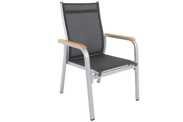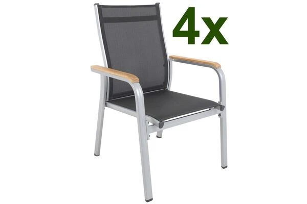 Kettler Granada 4er-Set Stapelsessel, Silber/anthrazit, Mit FSC Teakholz-Armlehnen, 0301205-0100