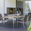 OUTFLEXX® Esstischgarnitur aus Edelstahl, FSC®-Teakholz und Textilene