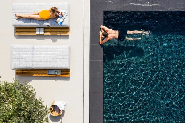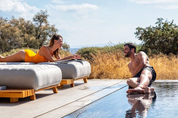 OUTFLEXX Icon Loungeliege, Lead Chine, Alu/Teak/Sunbrella, 213 X 89 X 41 Cm, Inkl. Verstellbarer Rückenlehne