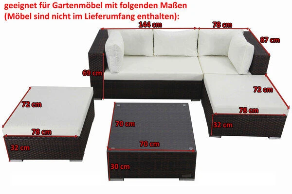 Das Abdeckhauben-Set passt zu Gartenmöbeln mit folgenden Maßen: