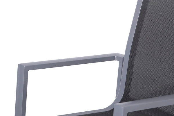 | Hoher Sitzkomfort Das fĂŒr die SitzflĂ€che und RĂŒckenlehne verwendete Textilenegewebe bietet neben einer sehr hohen WitterungsbestĂ€ndigkeit auch luftdurchlĂ€ssige Eigenschaften. Dadurch sitzt es sich ganz besonders komfortabel auf diesen Sesseln – auch ohne Polsterauflage.  | |