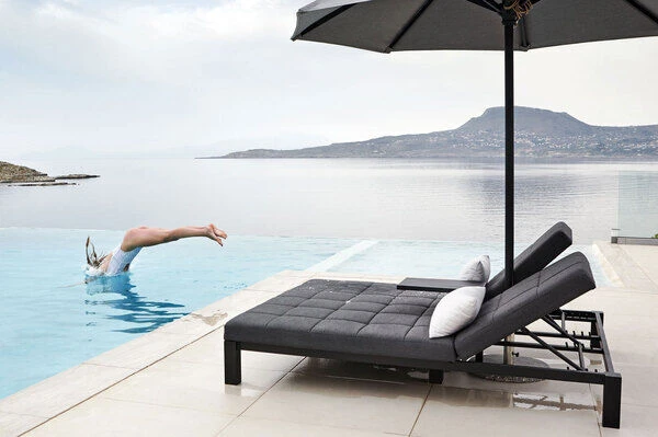 OUTFLEXX Twin Doppelliege, Sooty/marble, Alu/Sunbrella, 196 X 161 X 34 Cm, Rückenlehne Verstellbar, Inkl. Beistelltisch Und 1x Rückenkissen