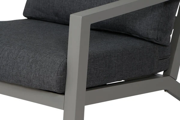 Den Alltag einfach hinter sich lassen! Dieser wetterfeste und pflegeleichte Loungesessel bietet höchsten Sitzkomfort gepaart mit modernem Design. Gönnen Sie sich ein wenig Luxus in Ihrem Alltag und verbringen Sie in gepflegter Atmosphäre den Tag auf Ihrer Terrasse: bei einem leckeren Frühstück, bei einer gemütlichen Mittagspause oder lassen Sie einfach den Tag entspannt ausklingen. Der bequeme Sessel macht es möglich und lädt Sie und Ihre Gäste jederzeit unaufdringlich zum Verweilen ein. Die praktischen ca. 50,6 cm hohen Armlehnen aus Aluminium bieten zusätzlichen Komfort. Der Sessel hat ein Gesamtmaß von ca. 79 x 91 x 81 cm, die Sitzfläche ist ca. 65 cm breit, ca. 60,5 cm tief und die Sitzhöhe liegt bei ca. 30 cm, die perfekte Loungehöhe.