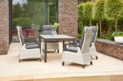 Holen Sie sich eine Extraportion Komfort in Ihren Garten. Die moderne Serie Carlos/Corido besticht durch höchsten Sitzgenuss. Die einzigartigen Wellness-Möbel vereinen gekonnt Qualität mit trendigem funktionalen Design. Die Rückenlehne des bequemen Sessels lässt sich mehrfach verstellen, somit wird jedes Essen zu einem gemütlichen Miteinander.