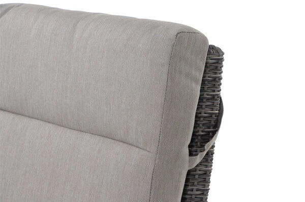 Gönnen Sie sich eine Auszeit. Mit dem hochwertigen Sessel holen Sie sich Ihren Wellness-Urlaub direkt nach Hause: Egal ob Sie die Sonne genießen, ein gutes Buch lesen oder einfach nur gemütlich mit Ihren Lieben gesellig beisammensitzen möchten. Dieser bequeme Sessel ist der ideale Begleiter und ein wahrer Anpassungskünstler, der Sie und Ihre Gäste jederzeit zum Verweilen einlädt. Die Rückenlehne lässt sich ganz einfach über einen Knopf in der Armlehne stufenlos einstellen. Die verbesserte Movetechnik sorgt für eine sanft laufende Rückenlehne, die müheloses Entspannen ermöglicht. Der Sessel hat ein Gesamtmaß von ca. 73 x 87 x 103 cm. Die ca. 60 cm breite Sitzfläche bietet genügend Platz. Mit einer großzügigen Sitztiefe von ca. 59 cm und bei einer Sitzhöhe von ca. 36 cm ohne Kissen lässt es sich hier auch herrlich bei einem Nickerchen entschleunigen. Die praktischen Armlehnen aus Aluminium bieten zusätzlichen Komfort und sind echte Hingucker. Passende, extra starke Kissen in der Trendfarbe taupe meliert verleihen dem Sitzmöbel ein unvergleichliches Sitzerlebnis.