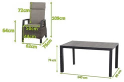 Gönnen Sie sich ein wenig Luxus in Ihrem Alltag und verbringen Sie in gepflegter Atmosphäre den Tag auf Ihrer Terrasse: bei einem leckeren Frühstück, bei einem genüsslichen Brunch oder lassen Sie bei einem Abendessen den Tag in geselliger Runde ausklingen. Dieser bequeme Dining Sessel lädt Sie und Ihre Gäste jederzeit zum Zurücklehnen und Verweilen ein. Stellen Sie die Rückenlehne des Anpassungskünstlers ganz einfach über einen Knopf in der Armlehne stufenlos ein. Die verbesserte Movetechnik sorgt für eine sanft laufende Rückenlehne, die müheloses Entspannen ermöglicht. Der Sessel hat ein Gesamtmaß von ca. 76 x 62 x 109 cm. Die ca. 50 cm breite Sitzfläche bietet genügend Platz. Mit einer großzügigen Sitztiefe von ca. 48 cm und bei einer Sitzhöhe von ca. 44 cm lässt es sich hier auch herrlich bei einem Nickerchen entschleunigen. Die praktischen Armlehnen aus Aluminium in einer Höhe von ca. 64 cm bieten zusätzlichen Komfort und sind echte Hingucker. Passende Sitzpolster in der Trendfarbe taupe meliert verleihen dem Sitzmöbel ein unvergleichliches Sitzerlebnis.