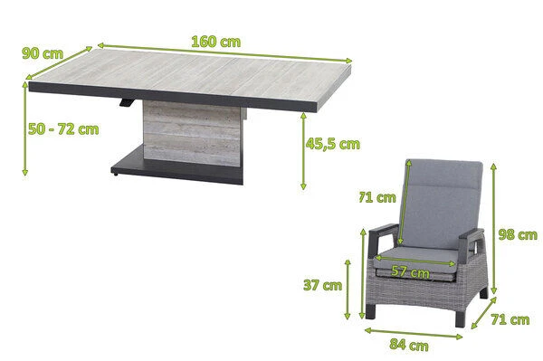 1x SIENA GARDEN Bellani Lifttisch, matt anthrazit/pine grey, Alu/Keramik, ca. 160x90x50-72 cm, stufenlos verstellbar (J04068)