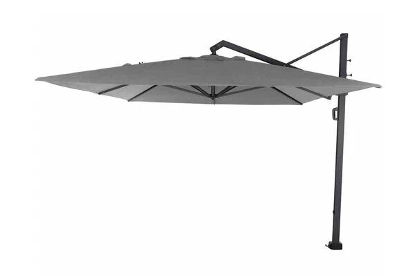 Der Bezug wird aus dem UV-beständigen und lichtechten Polyestergewebe Spuncrylic® (100% Polyester, 240 g/m²) gefertigt und ist damit besonders strapazierfähig – ideal für den täglichen Einsatz. Ob strahlender Sonnenschein oder auch mal ein kleiner Regenschauer: Das Schirmtuch hält das alles aus. Zusätzlich schützt es mit einem Lichtschutzfaktor von UFP 50+ AS/NZS auch vor starker Sonneneinstrahlung. Das Schirmtuch kann abgenommen werden und ist handwaschbar, oberflächliche Verschmutzungen lassen sich also sehr leicht entfernen. Die gewohnten Features der Serie kommen hier natürlich auch nicht zu kurz. Neben der kinderleicht zu bedienenden Öffnungsmechanik durch eine handliche Kurbel lässt sich bei diesem Schirm die Schirmfläche bei Bedarf ganz einfach 6-fach neigen und so dem Stand der Sonne anpassen – optimaler Sonnenschutz zu jeder Tageszeit ist also garantiert. Außerdem kann man den Schirm komplett per Fußpedal um 360° drehen. Die Lieferung erfolgt ohne Schirmständer, das Mindestgewicht für den Schirmständer liegt bei ca. 150 kg.