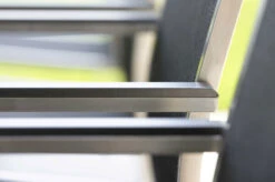 Die dazu passend kombinierten Sessel überzeugen nicht nur mit dem zeitlosen Design und den hochwertigen Materialien, sondern vor allem auch durch den Komfort und die Funktionalität. Schlicht, unauffällig und dennoch ein Hingucker. So lässt sich der Cardiff Stapelsessel wohl am besten beschreiben. Die hochwertigen Materialien und die sorgfältige Verarbeitung sorgen nicht nur für die besondere Optik der Stühle, sondern machen zudem sehr stabil. Der Cardiff wird Ihnen durch seine hohe Widerstandsfähigkeit gegen Wind und Wetter viele Jahre Freude bereiten. Das verwendete Edelstahl der Güteklasse 304 ist rostfrei und ebenso wie das Textilgewebe der Sitzfläche und Rückenlehne besonders pflegeleicht. Die Sitzfläche hat die Farbe silber und ist gepolstert, was für zusätzlichen Komfort sorgt.Leichte Verschmutzungen lassen sich ganz einfach mit ein wenig Wasser wieder entfernen. Die Armlehnen wurden aus Aluminium gefertigt und besitzen die Farbe anthrazit. So können Sie sich guten Gewissens zurücklehnen und sich so richtig entspannen. Durch seine Stapelfunktion und den Maßen von ca. 61 x 57 x 92 cm lässt sich der Stuhl aber dennoch platzsparend verstauen, wenn Sie doch einmal etwas mehr Platz auf Ihrer Terrasse oder im Garten benötigen sollten.