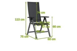 Der Sessel überzeugt nicht nur mit seinem zeitlosen Design und den hochwertigen Materialien, sondern vor allem auch durch seinen Komfort und seine Funktionalität. Schlicht, unauffällig und dennoch ein Hingucker. So lässt sich der New Top wohl am besten beschreiben. Holen Sie sich mit diesem Sessel Eleganz vereint mit perfektem Sitzkomfort nach Hause und genießen Sie entspannte Stunden z.B. nach Ihrem Feierabend. Die hochwertigen Materialien und die sorgfältige Verarbeitung sorgen nicht nur für die besondere Optik dieses Stuhls, sondern machen ihn auch äußerst stabil. Der New Top wird Ihnen durch seine hohe Widerstandsfähigkeit gegen Wind und Wetter viele Jahre Freude bereiten. Das Gestell aus Aluminium ebenso wie das Textilgewebe der Sitzfläche und der Rückenlehne sind besonders pflegeleicht. Die Sitzfläche hat die Farbe silbergrau. Leichte Verschmutzungen lassen sich ganz einfach mit ein wenig Wasser wieder entfernen. Durch seine Klappfunktion und den Maßen von ca. 75 x 60 x 113 cm lässt sich der Stuhl platzsparend verstauen, wenn Sie doch einmal etwas mehr Platz auf Ihrer Terrasse oder im Garten benötigen sollten. Der Klappsessel bietet 5 verschiedene Verstellmöglichkeiten, sodass Sie immer die ideale Sitz/-Liegeposition erreichen.