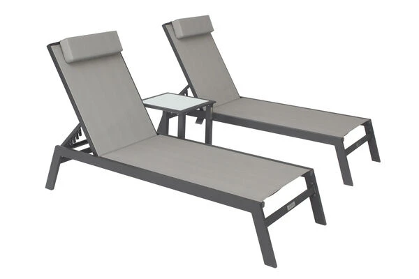 Exklusives Gartenliegenset von Villana in Anthrazit / Grau mit praktischem Beistelltisch