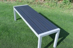 Die dazu passenden Bank aus dem identischen Material rundet das Gesamtpaket ab. Mit der jeweiligen Größe von ca. 135 x 40 x 45 cm haben Sie ausreichend Platz für jeweils bis zu 3 Personen. Auch bei den Bänken wurde das Gestell aus pulverbeschichtetem Aluminium gefertigt und gibt der Bank eine besonders hohe Stabilität und dank des Gewichtes von ca. 9,6 kg ist die Bank auch bis ca. 240 kg belastbar.