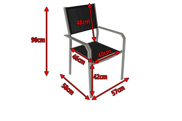 VILLANA Gartenstuhl, Silber/schwarz, Aluminium/Textil, 58 X 57 X 90 Cm, Stapelbar